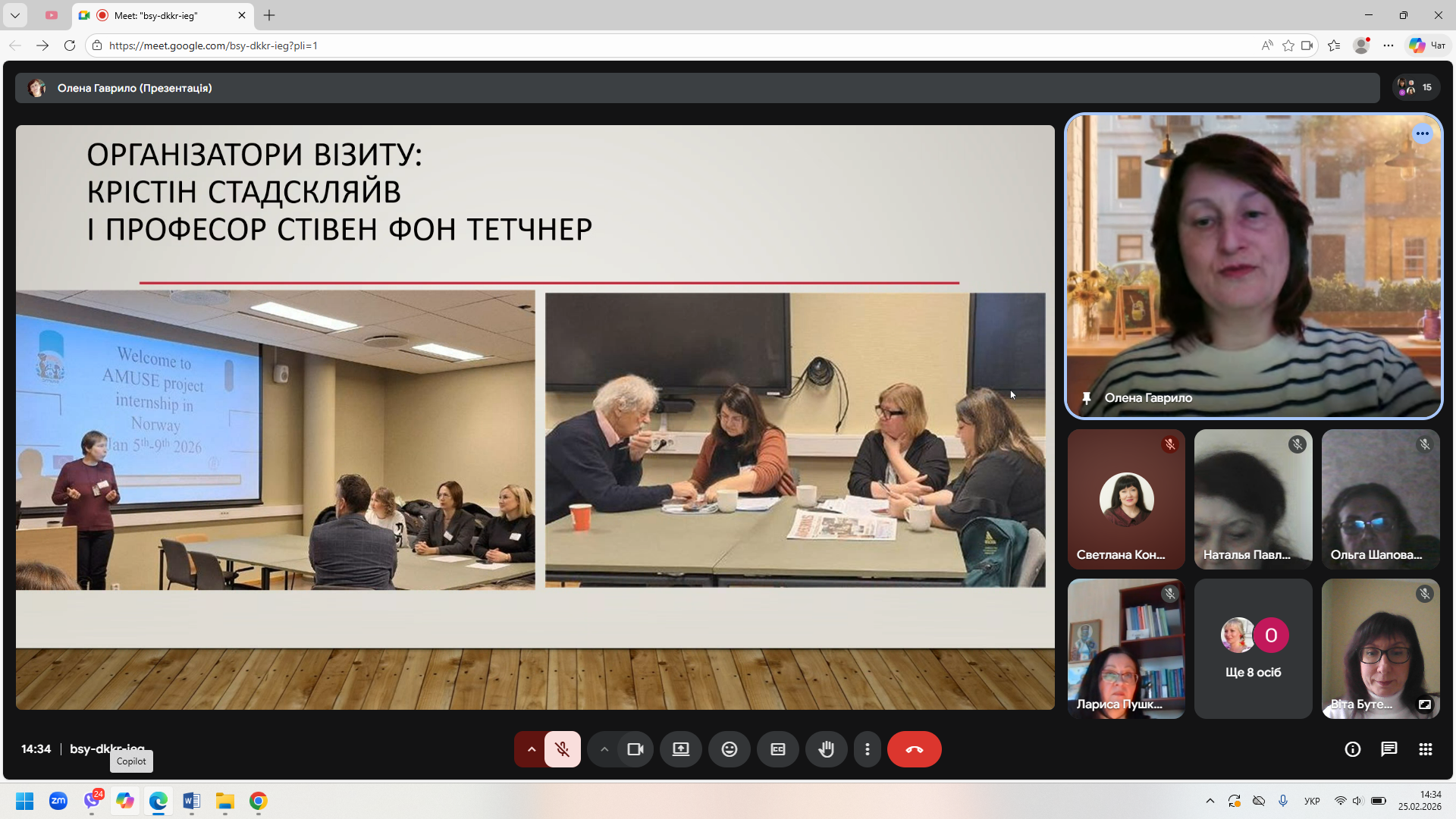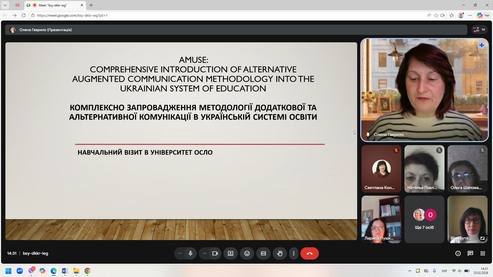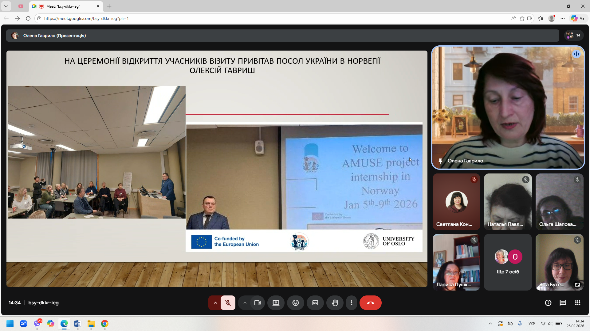 25 лютого 2026 року на базі кафедри дошкільної і початкової освіти відбувся онлайн-семінар «Навчальний візит до Університету Осло в межах міжнародного проєкту К2 AMUSE». Доповідач – доцент кафедри Олена ГАВРИЛО. Був представлений фотозвіт про семінари під час навчального візиту та відвідування шкіл, де використовується методика альтернативної і додаткової комунікації. Цікавість учасників семінару викликала діяльність науково-діагностичної лабораторії спеціальної освіти і навчання, створеної при Університеті Осло, а також державні й громадські організації Норвегії, які допомагають людям із складними комунікаційними потребами. Після доповіді відбулося жваве обговорення результатів візиту та окреслені перспективи діяльності робочої групи проєкту AMUSE.